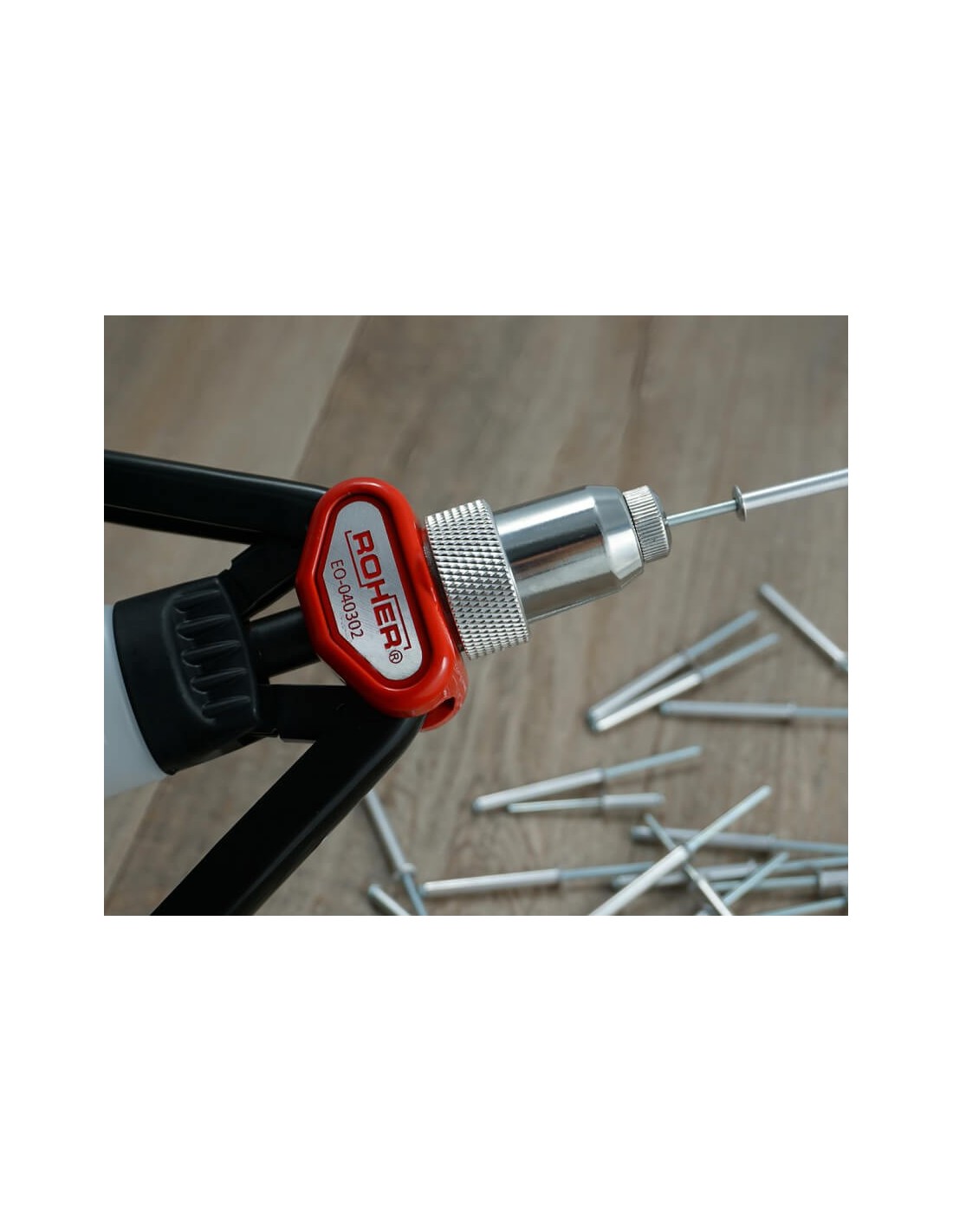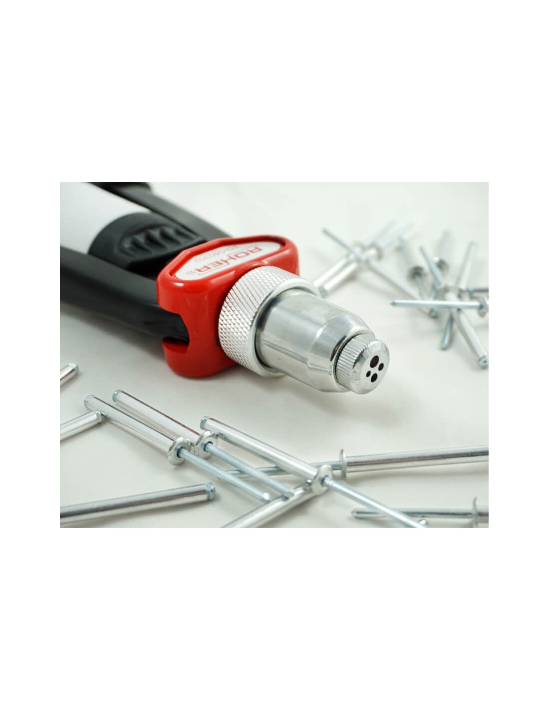 Remachadora de dos manos KOMPACT-PLUS MAX de 5,8mm. Herramienta diseñada para trabajos exigentes que requieren el uso de remaches grandes.