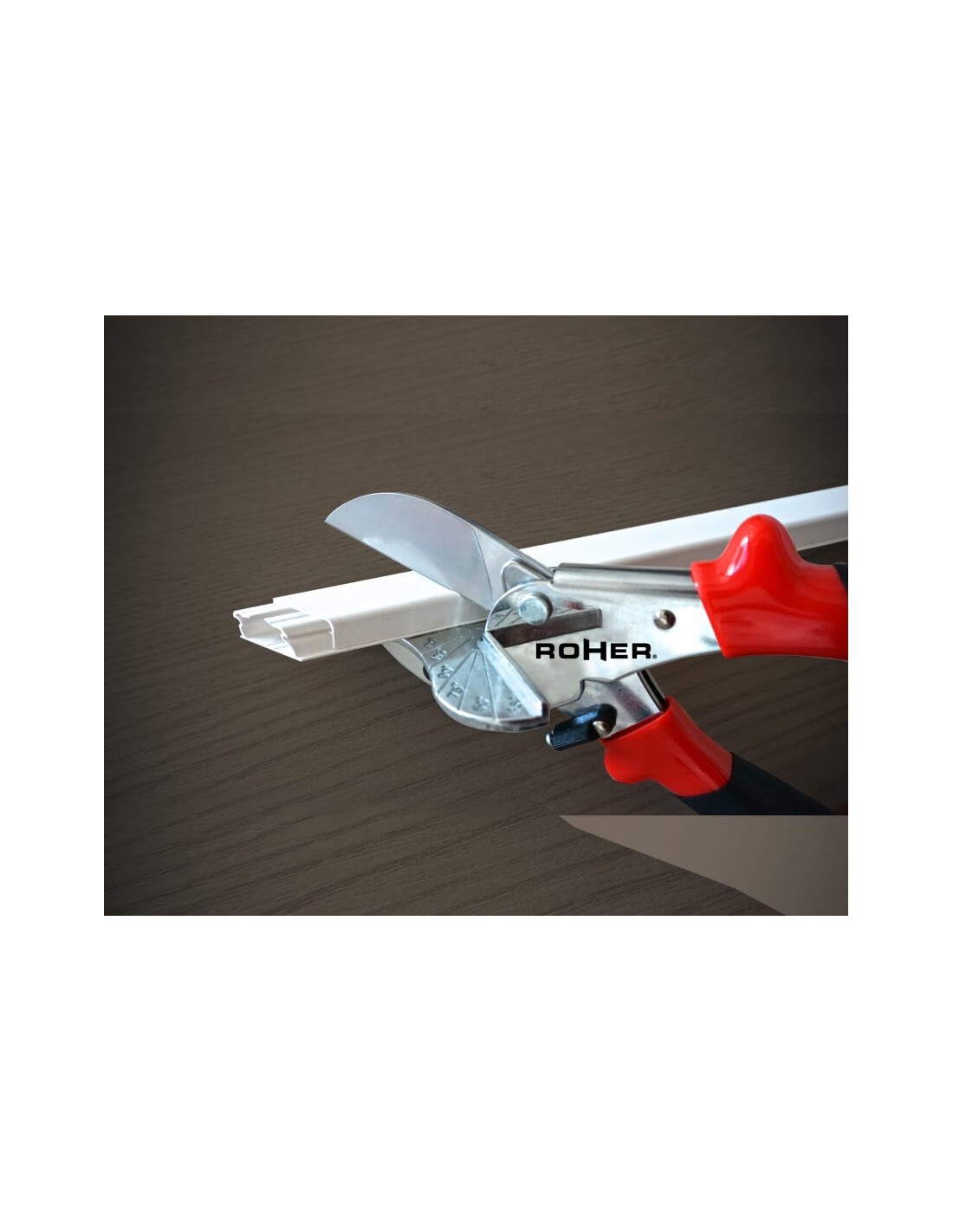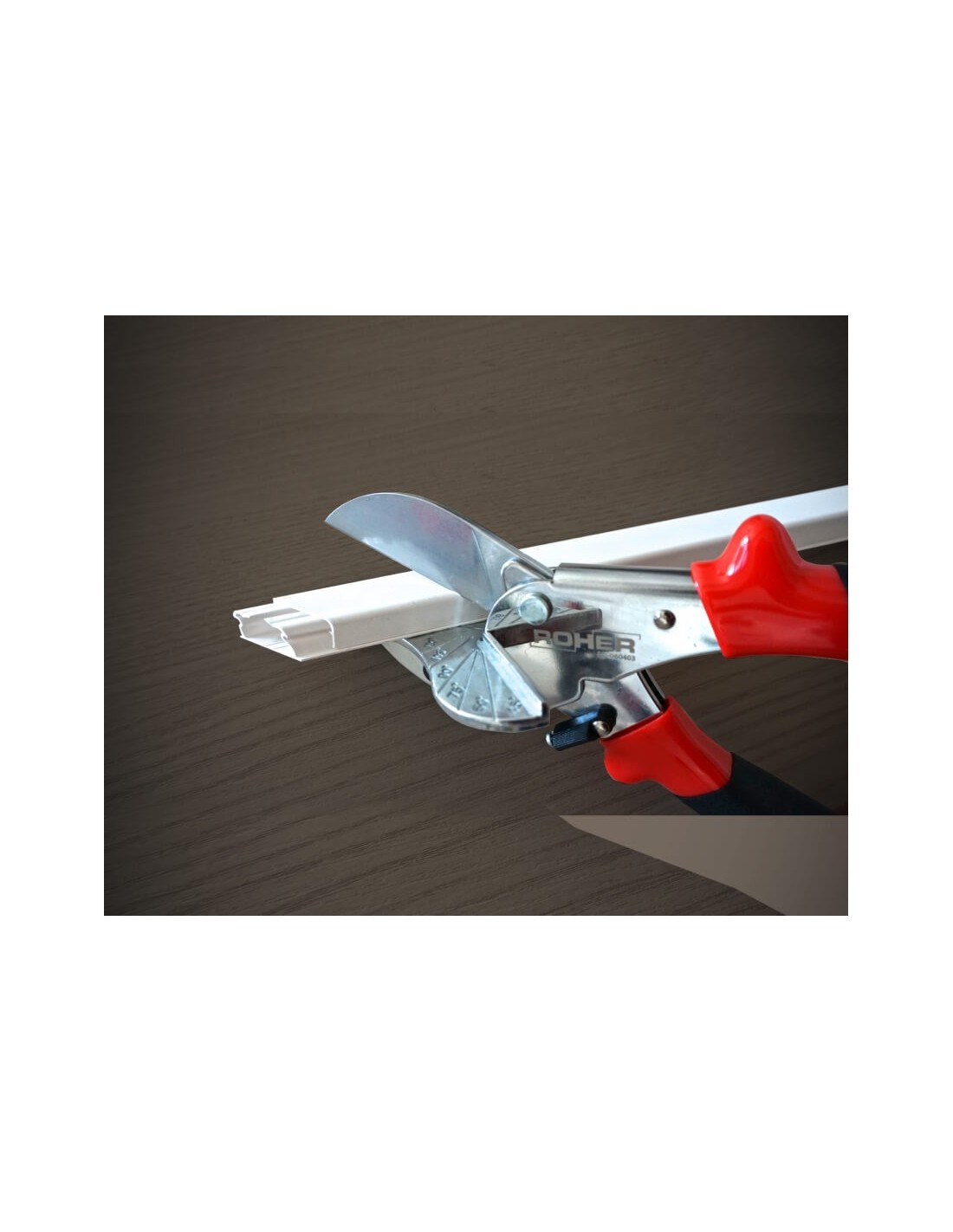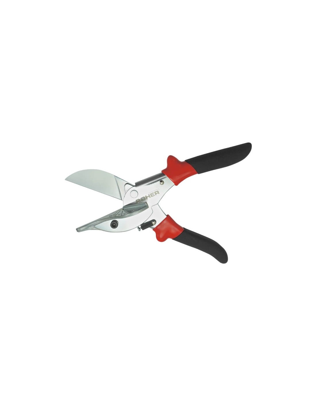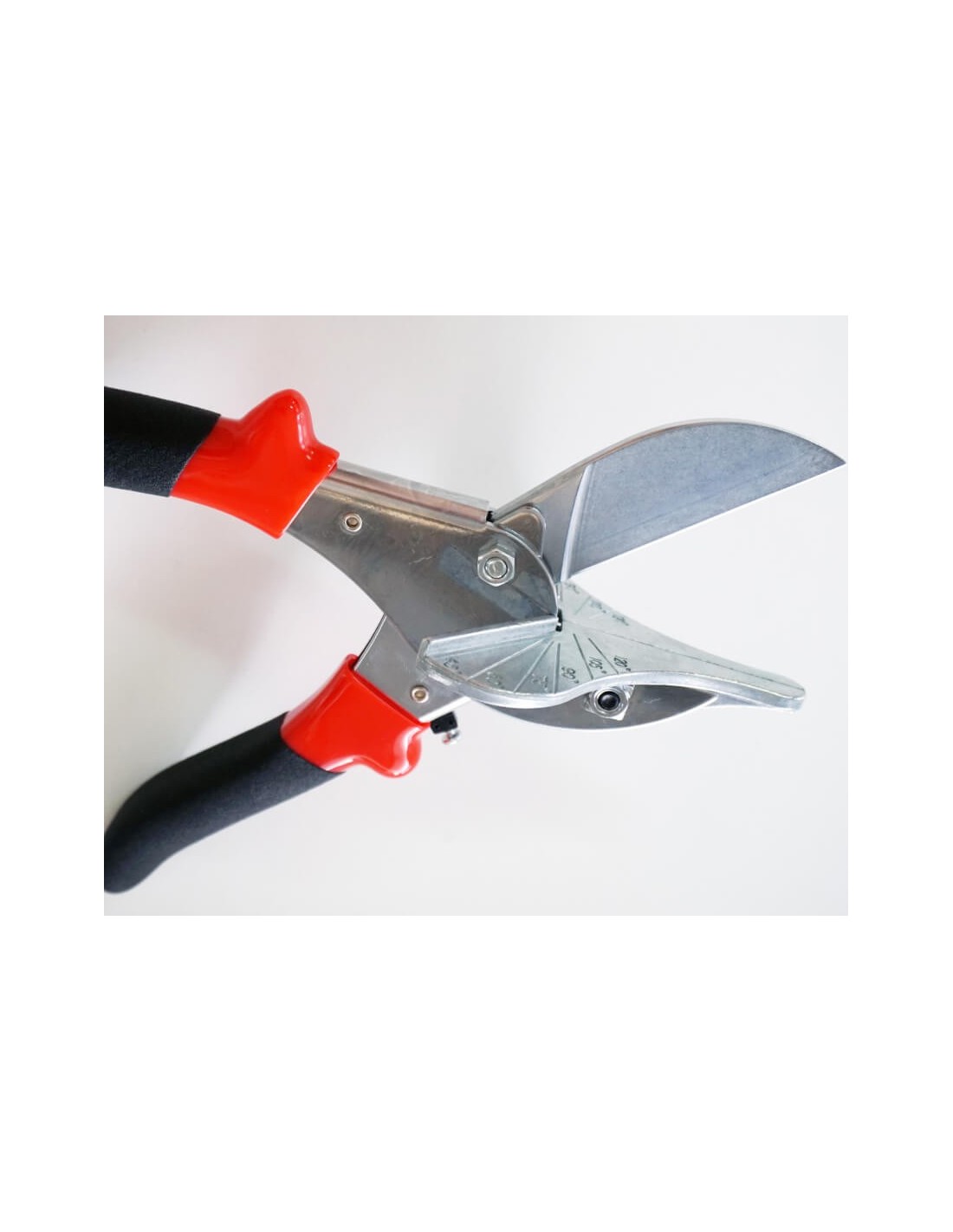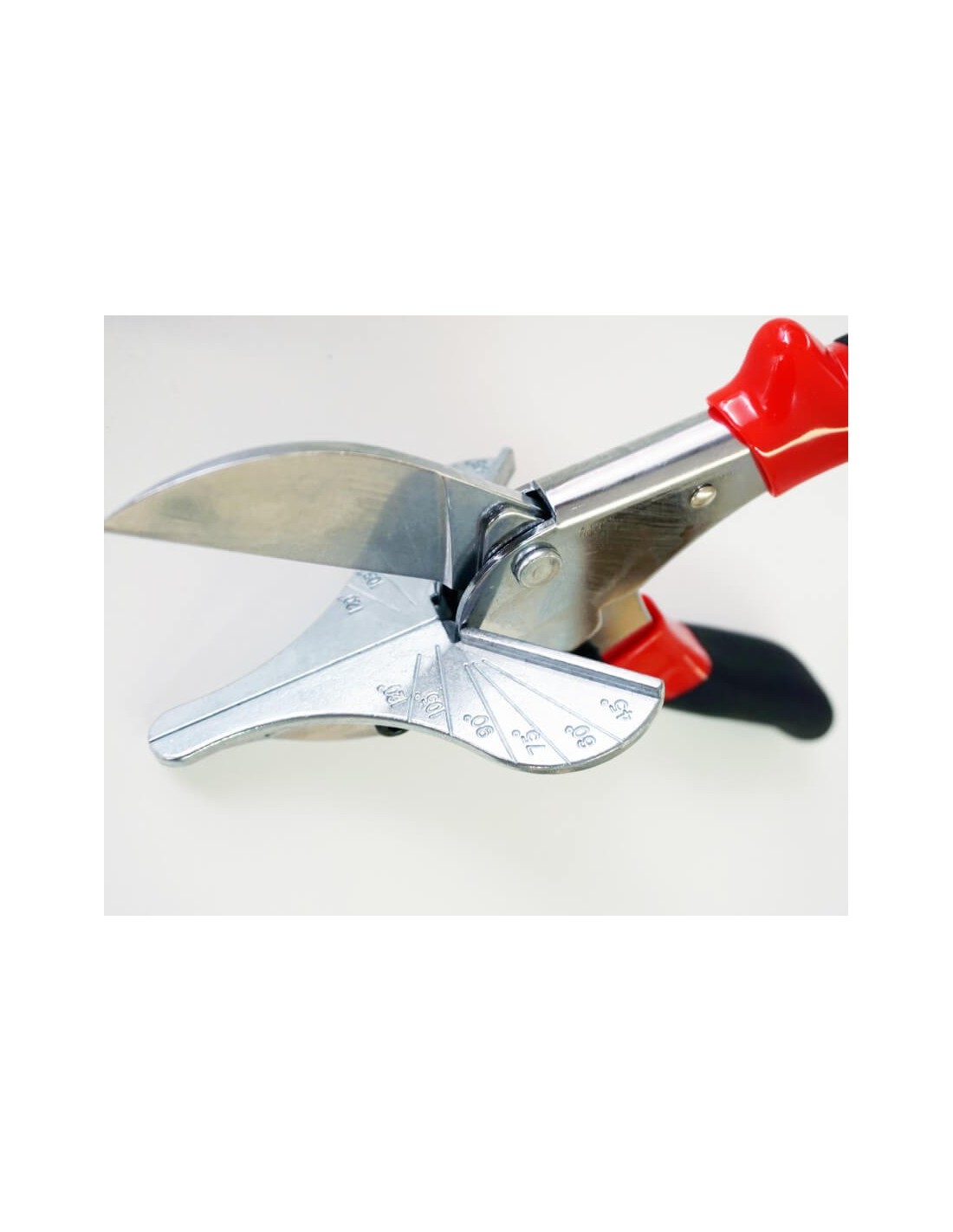 Tijera corta ingletes de 200mm con hoja fija. Esta tijera está diseñada para realizar cortes precisos en molduras y perfiles de madera o plástico.